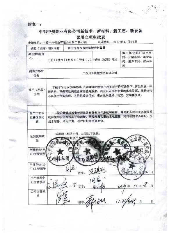 吉林一種機械密封試驗裝置-專利證書